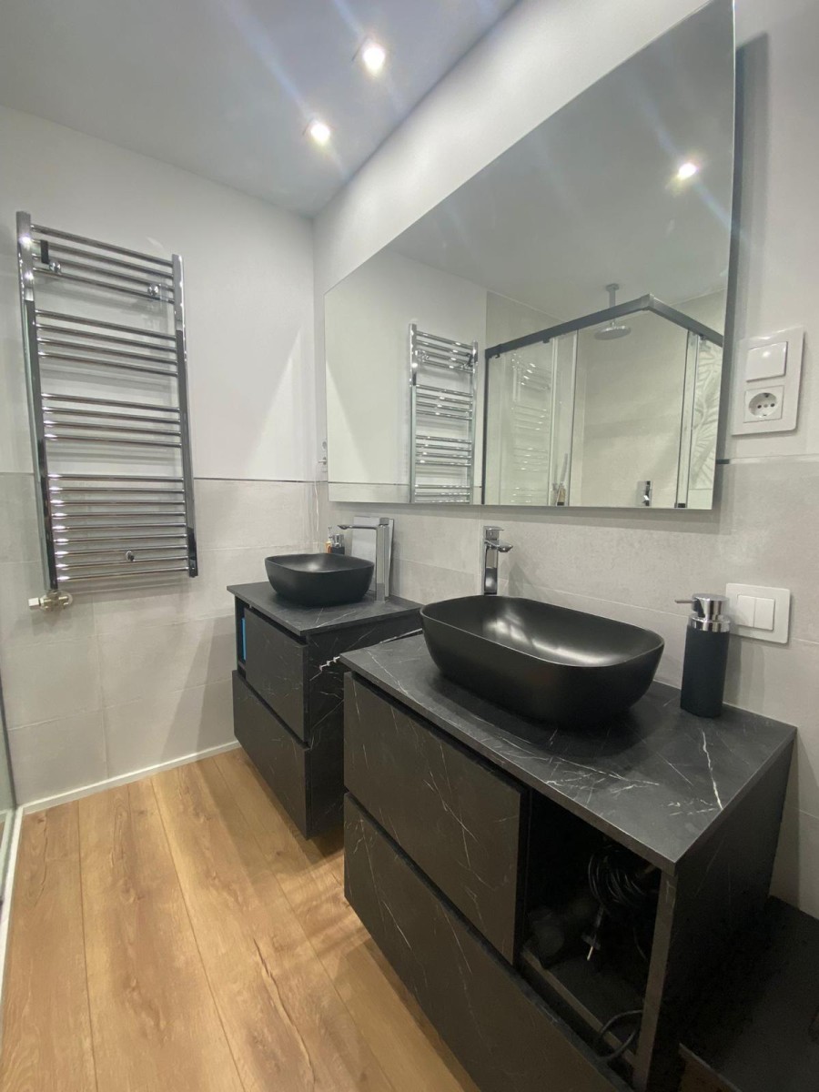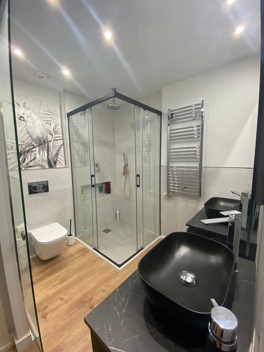 Estamos encantados con el resultado de la reforma. La dualidad entre los muebles blancos y negros en la cocina, asi como la uniformidad en los baños, han creado espacios funcionales y visualmente impactantes. Esperamos que este proyecto pueda inspiraros en la busqueda de un diseño único y personalizado para sus hogares.